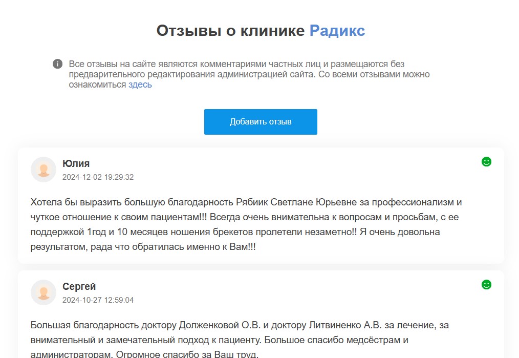 Мы можем регулярно импортировать отзывы из других источников (Яндекс, Google, 2GIS и группы «ВКонтакте») и отображать их на странице вашей компании.
